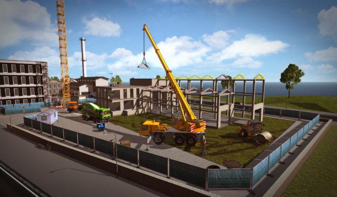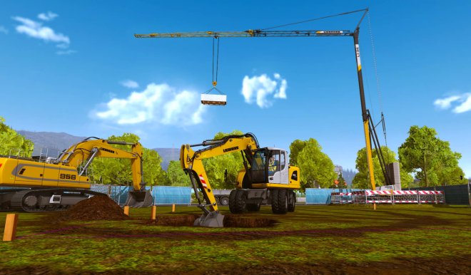 Excavate the foundation of a house with realistic machines, pour concrete into the wall panels of a factory with an enormous concrete pump, or test the steadiness of your hands by placing gigantic roof trusses with a mobile crane. Thanks to the realistic controls, you can steer an excavator with two joysticks using SAE controls and feel as if you are working on a real construction site.