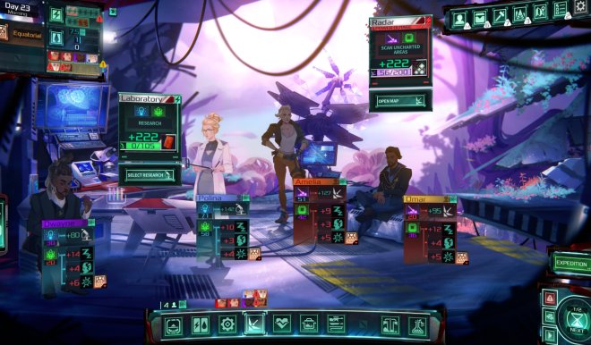 Dead in Antares是一款融合了RPG元素的回合制生存管理游戏,故事发生在一个外星星球上。你将领导一支肩负拯救人类使命的幸存者小队,管理成员的需求,增强团队协作,探索这片神秘世界,寻找回家的道路。