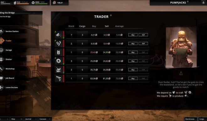《Dust Raiders》提供了包含需求和供应的动态经济体系,以及影响市场的随机事件。你需要对购买和出售的商品做出战略决策,以使你的利润最大化。