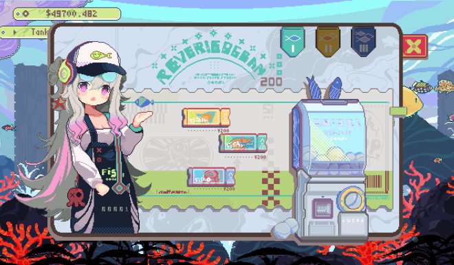 在精心搭建的鱼箱中培育自己的鱼苗,当它们成长后选择换取金币或者留在身边,来定期获得固定金币。