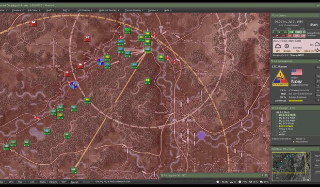 Flashpoint Campaigns: Cold War is a grand tactical combat simulation on the Cold War battlefield. As the force Commander, you will plan and then issue orders and Standard Operating Procedures to your battalion, brigade, or regimental forces, shaping the fight by maneuver and your intent. Your forces will engage the enemy in rendered real-world map locations. Each hex is 500m of militarily significant terrain on maps covering 20km x 15km or greater locations across the German area of battle. Each battle can last 4 to 24 hours of in-game time. Your troops will meet their foes at any time of day and in any realistic weather conditions.