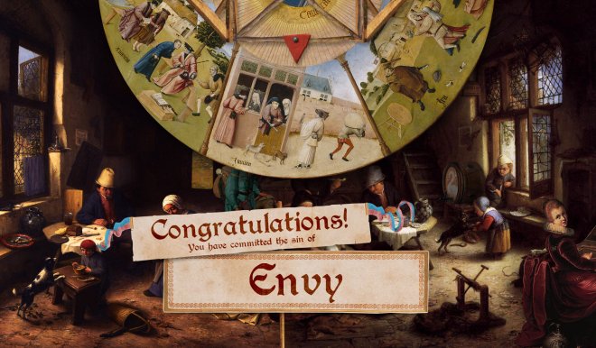 《Four Last Things》是一款指向点击冒险游戏,内容取材于文艺复兴时期画作,以及具有公共版权的古典音乐录音。游戏围绕“原罪”与“万民四末”(死亡、审判、天堂和地狱)展开,力求完美体现知性幽默与荒诞搞怪。