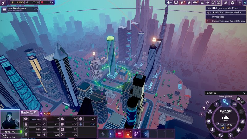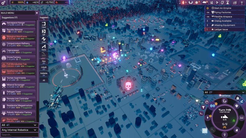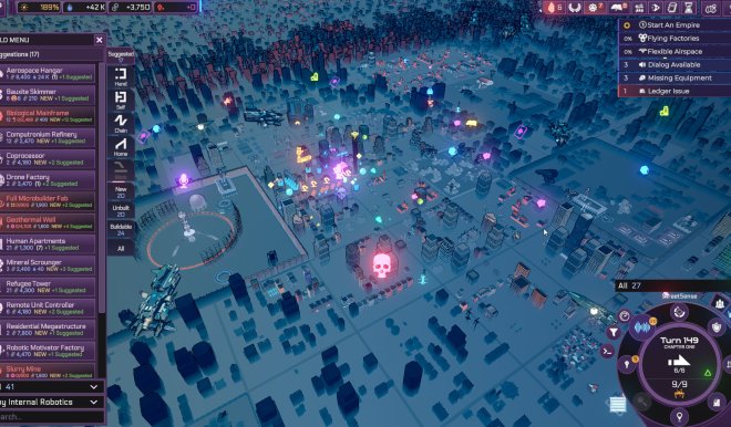在游戏中,你将面临诸多选择。比如,你可以成立一家空壳公司,为自己的真实身份增添一层保护性伪装,并利用这层伪装与人类接触,安安稳稳地当个在幕后操控一切的人工智能傀儡大师。这样做既可以令你积累起巨额财富,又能让你在暗处运筹帷幄,雇用人类执行任务而不引起警觉。而如果你热衷于暴力冲突,则可能会将注意力转向开发最强大的武器平台,并用毁灭性的装备对其进行升级,而非提升其认知能力,让它们利用智能去解决问题。除了有多条路线可供选择之外,你还可以同时追求多个目标,看它们如何在碰撞中产生惊喜。