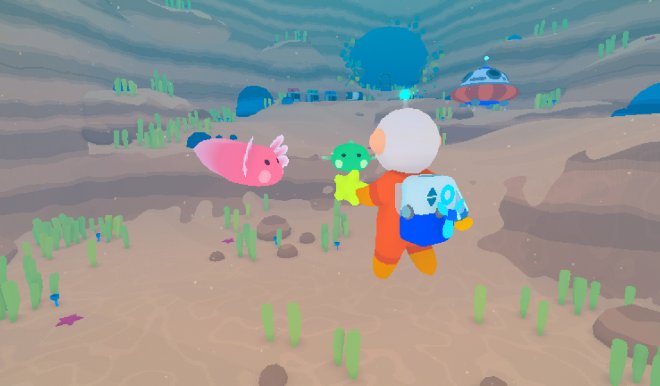 《Loddlenaut》是背景设定在一颗充满活力的外星星球上的一场海洋清洁冒险。玩家将扮演一名星际管理员,任务是要清理大型航天公司留下的污染物。在重新唤醒这颗星球郁郁葱葱的生态系统的过程中,你会与当地一种类似于蝾螈的生物成为朋友,并探索沉入海底的企业废墟。