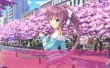 在整排的樱花树下,心情激动的我,期待着即将开始的全新校园生活。