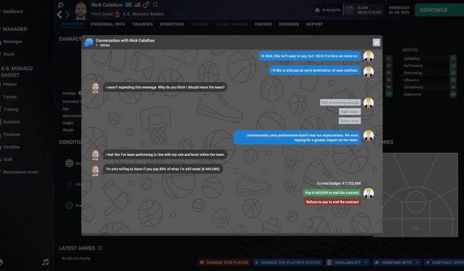 在PBM2026中,转会、解雇等重要决定将需要与球员协商。你将需要向球员解释你的决定,并对球员的反应进行妥善处理——如果谈判失败,球员有可能灰心丧气,带来的后果可要由你承担!