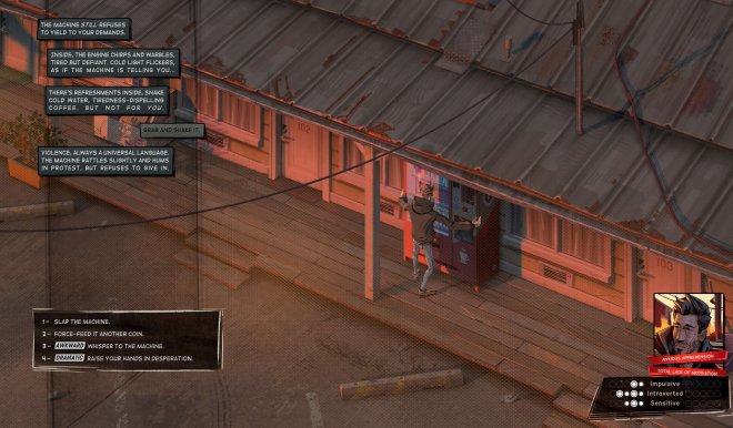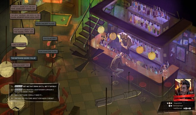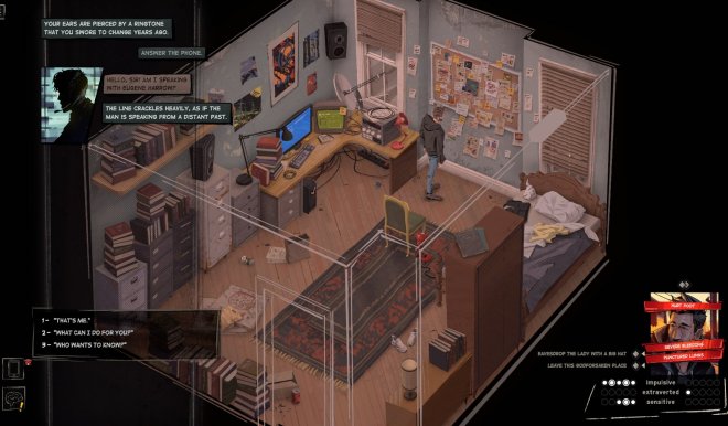 你能够以独属于自己的方式推进剧情,同时通过在图表中储存记忆来解锁意图和思维模式。你可以采用奇怪的思维模式进行出乎意料的有趣对话,并体验各种能够改变人格的状态效果,例如在喝醉时变得更外向,或在焦虑时变得格外敏感。