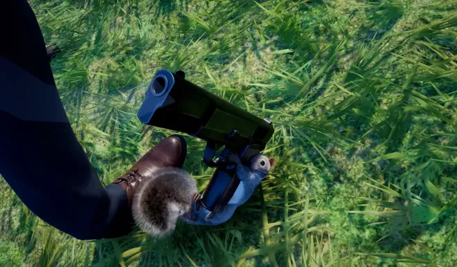 松鼠遇到枪。松鼠大概可以算得上邻里最让人讨厌的啮齿类动物之一了吧。为了寻找黄金橡子,它需要学会(爱上?)犯罪和制造混乱。用尖牙利爪和各种枪械战斗,逃离地下秘密设施,打败层出不穷的特工,快来玩这款疯狂的沙盒射击和解谜平台游戏吧!