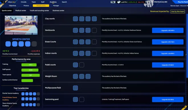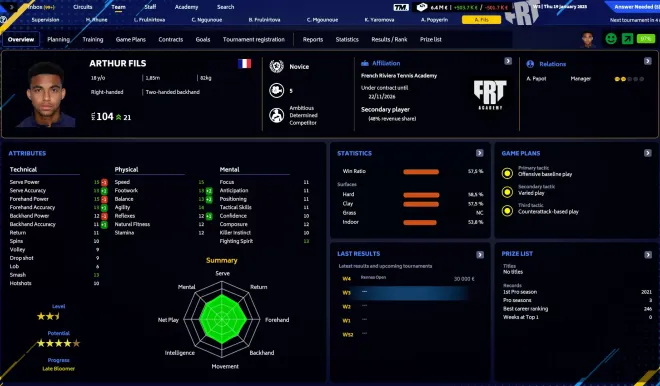 In Tennis Manager 2023, strategic management is key to your success. Ensure financial stability, negotiate contracts, and make structural investments wisely to achieve both short-term and long-term goals. Impress your demanding board of directors with your astute decision-making and become the reference with your own coaching and managing style.