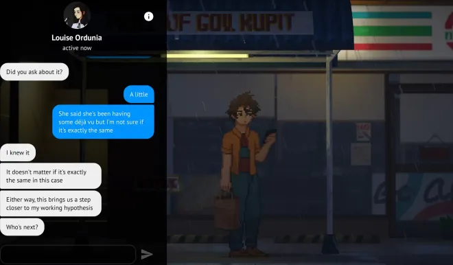 直到一次宿命的会面引发了连锁反应,将马克的生活搅得天翻地覆。人们接连失踪,而记忆也变得不再可靠。在这场叙事冒险中,你将与马克和他的朋友们一起揭开隐藏的真相,并在世界末日来临之前争分夺秒解开谜团。