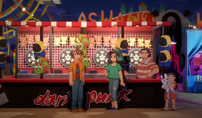 观看以优美手绘像素风呈现的独特叙事世界,沉浸在暖色调的画面和优美的音乐氛围中,试着走出悲剧。 人物、风景和道具完美融入 3D 场景。精心打造的阴影、倒影和光线奠定了独特的游戏基调。