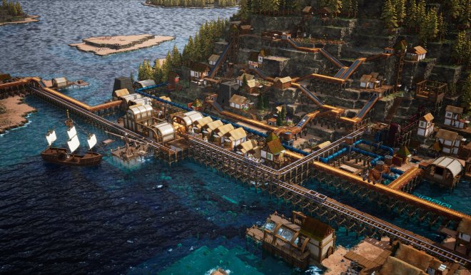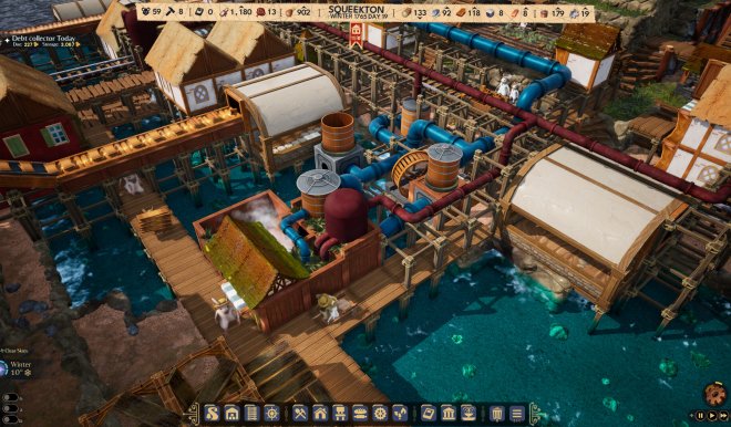 • 放置管线,长距离输送水与蒸气,满足整座岛屿的基本需求。水泵、水井、散热器与通风口皆在有限区域内运作,必须谨慎考虑并设法让设施遍布殖民地。
